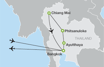 Your trip begins with a regularly scheduled overnight flight to Bangkok aboard an internationally recognized airline.
